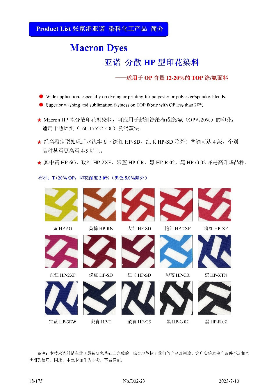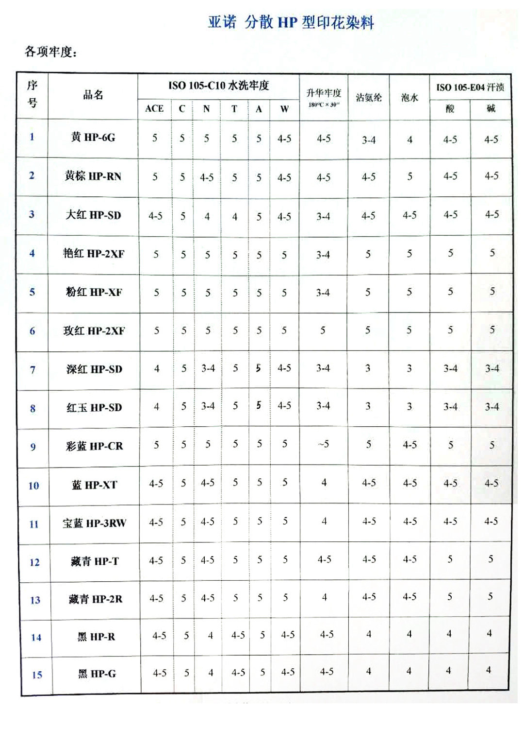 亚诺分散涤氨 HP型印花系列